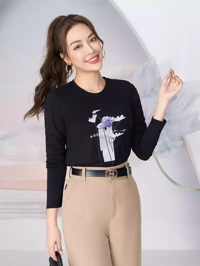 Áo thun nữ dài tay in hình hoa