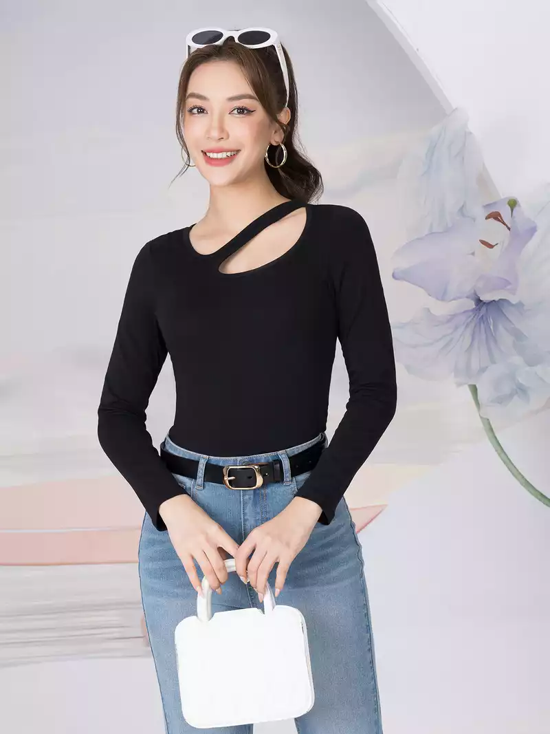 Áo thun nữ dáng ôm dài tay cổ cách điệu